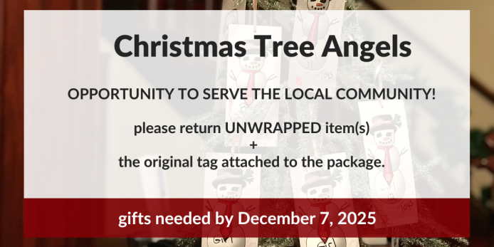 The Salvation Army Angel Tree will be up in the lobby beginning Sunday, November 2, 2025. The last day to bring in gifts will be Sunday...